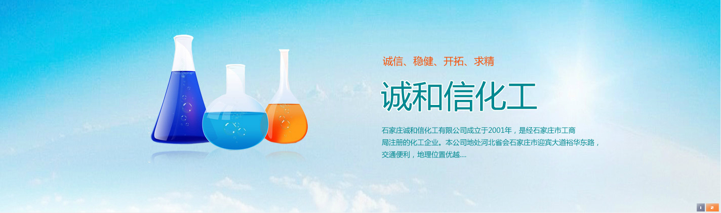 石家莊誠和信化工有限公司成立于2001年,是經石家莊市工商 局注冊的化工企業(yè)。本公司地處河 北省會石家莊市迎賓大道裕華東路 ,交通便利,地理位置優(yōu)越。公司 主要產品....詳細>>